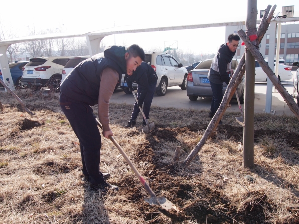 今天,阳光明媚,春风拂面,金年会集团的员工们满怀热情,拿起铁锹、水桶等工具,为园区内的树木培土、浇水、系上鲜艳的红色绸带。每一颗树木都如同我们的希望,在春天的阳光下茁壮成长,为我们的家园增添一份生机与活力。