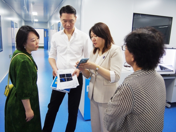 随后,众人实地考察了山东金年会集团生物实验室,胡总详细介绍了金年会泛癌筛查检测产业化的进展情况,并全程演示了泛癌筛查检测业务全流程自动化设备检验的操作,让来访者直观感受到金年会集团在科研创新方面的严谨态度和专业水平,客人一行看完设备操作后,对金年会全自主知识产权研发的“循环肿瘤细胞富集-染色仪”能在2.5小时内完成12人的样本检测,从血样加样、设备自动富集染色、设备自动扫描细胞图像、AI软件自动识别和分析循环肿瘤细胞的全流程自动化操作给予高度评价!