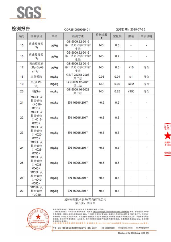 此次SGS针对雪莲培养物咖啡饮品的检测,肠杆菌科、大肠埃希氏菌、沙门氏菌、金黄色葡萄球菌等12项微生物检测全部合格!从根源上杜绝了微生物污染的风险,安全感瞬间爆棚。同时,重金属铅、锡、黄曲霉素、邻苯二甲酸二正丁酯(DBP)等多项有害物质均未检出,三聚氰胺、MOSH(矿物油)、MOAH(潜在致癌物)全部合格。